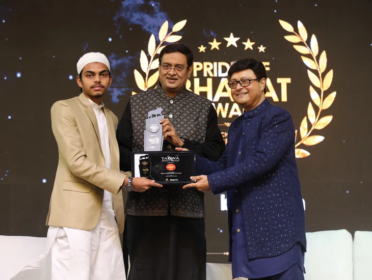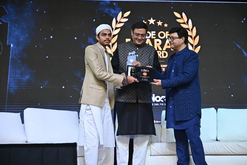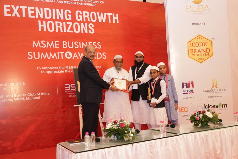 Mr. Asrar Sayyed, receiving Iconic brand of the year award for Taqwa from Mr. Imtaiyazur Rahman, CEO UTI ltd