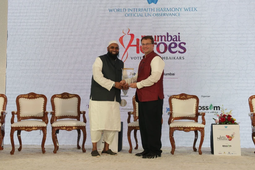Mr. Asrar Sayyed, Receving Mumbai Heroes Momento from the then U.S consulate Mr. EDGARD KAGEN IN HUMANITY FIRST CONCLAVE, Mumbai